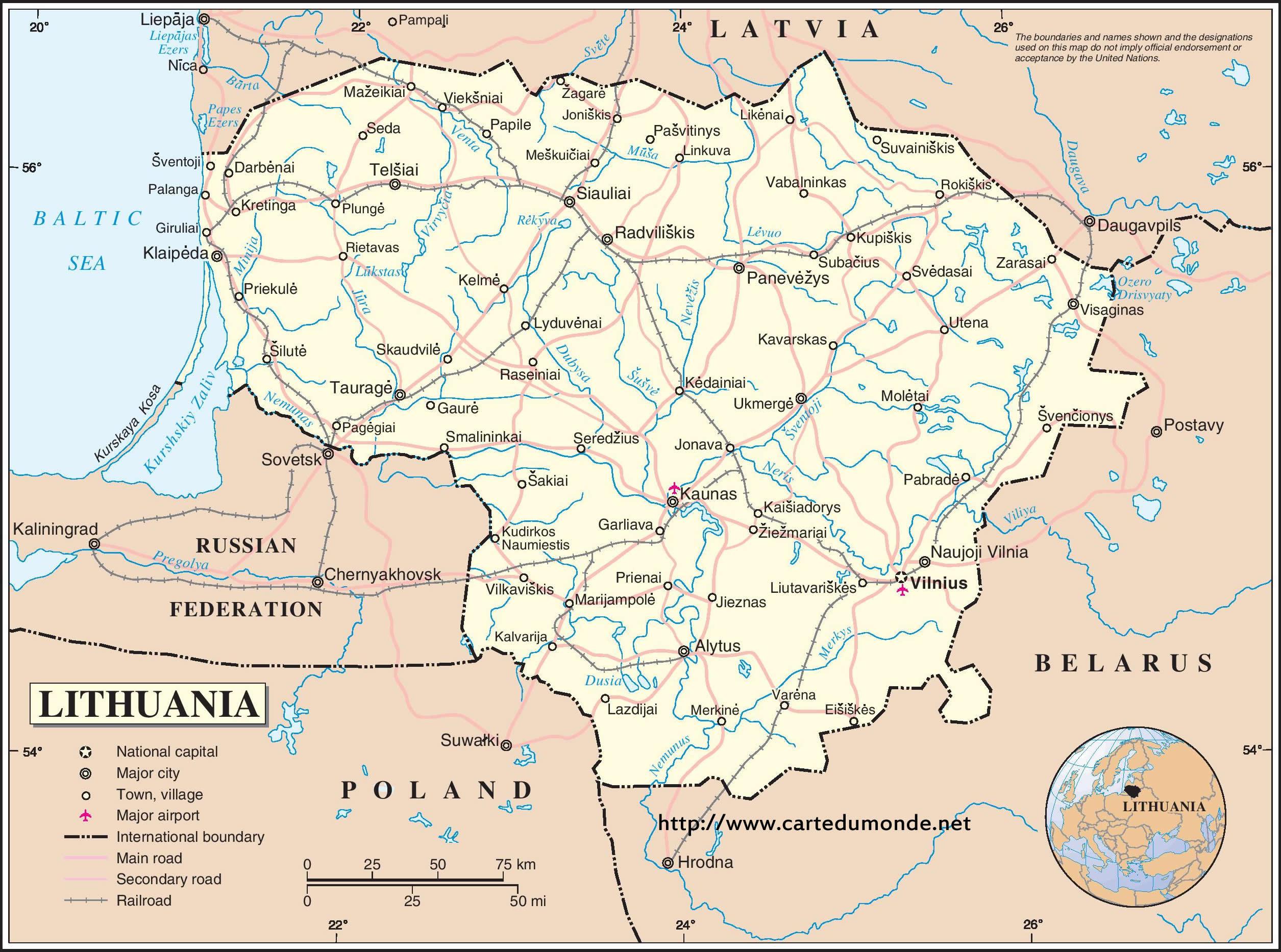 Map of Lithuania country. Lithuania country map (Northern Europe - Europe) to print. Lithuania country map (Northern Europe - Europe) to download.
